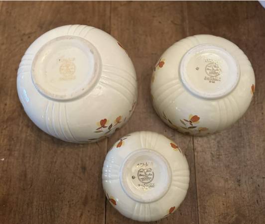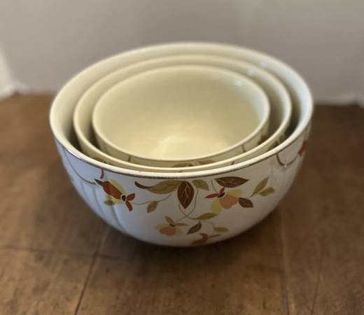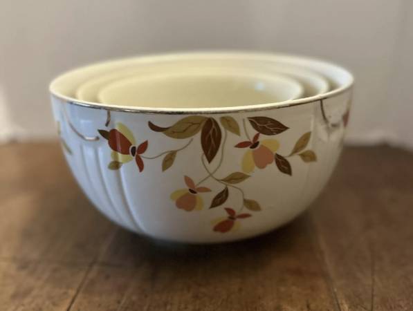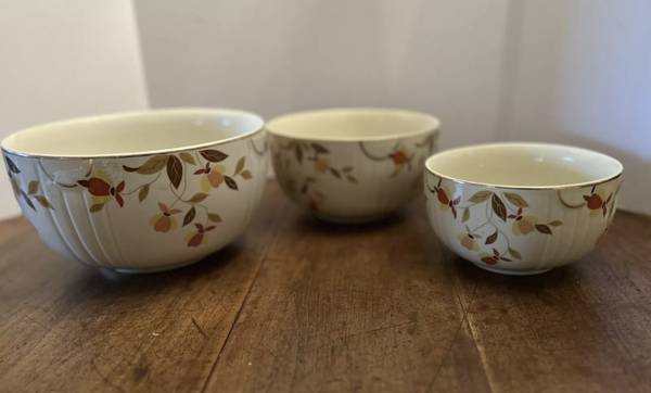 Vintage Hall's JEWEL TEA "Autumn Leaves" Set of 3 NESTING Mixing BOWLS 1950-76 Mary Dunbar Bowl Sizes measuring across top 9" 7.50". 6.25" Reasonable Offers Considered Exceptional Vintage Condition!...
