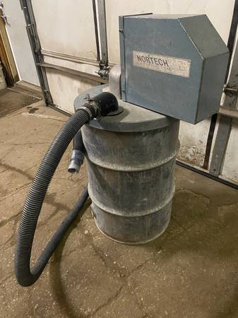Nortech Model 301D Vacuum System Air Powered (Hook up to Air Compressor) 1.75 Inch Inlet Overall Size: 20 Inches Wide 25 Inches Deep 41 Inches Tall Barrel Included Good Working Condition We will...