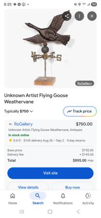 Antique Flying Goose Weathervane - $300 (North Sheboygan)