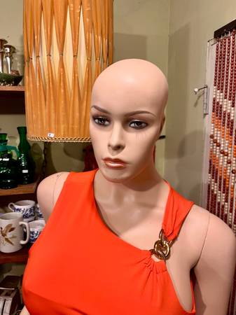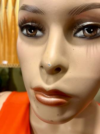 Perfect for a fun home decor, or a Halloween setup. She probably was a lingerie model setup. Has original stand. 6feet tall. Unit is mostly solid standing but does have a slight tip. Just wouldn’t be messing with it once setup.
