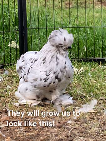 They look like females! Very docile! And will grow up beautiful! We just can't keep more chickens, lol! One has all black skin, and the other has splashes of black skin all around her! They hatched October 4, 2025! And are purebred! We're asking $20 each! But I will make deals! Please contact me if interested! We want them gone before winter! If you have any other questions, please let me know! Thanks!