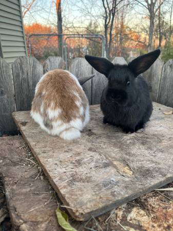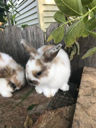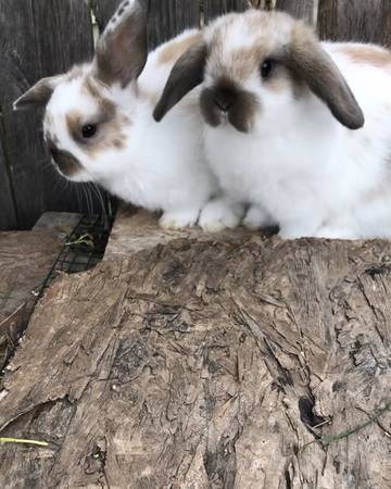 Only 2 left! These adorable bunnies are 9 weeks old and eating regular food. They are both does. ( Not pedigreed) purebred lops but their ears are still in the process of lopping:) Serious inquiries...