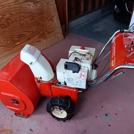 Heavy duty Jacobson snowblower in excellent running condition, 8hp, 26" clearing width, well maintained, new belts, Electric start, good tires with chains, will handle Heavy snow, be ready when the snow comes, $300 call show contact info