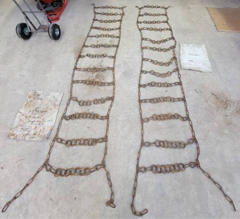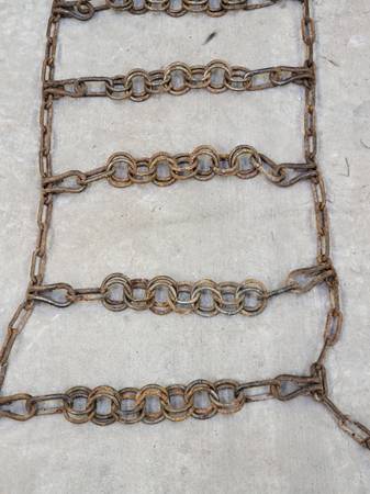Double ring tractor tire chains, fits 12.4x28 and 13.6x24. This set goes for over $600 new, selling for $350.