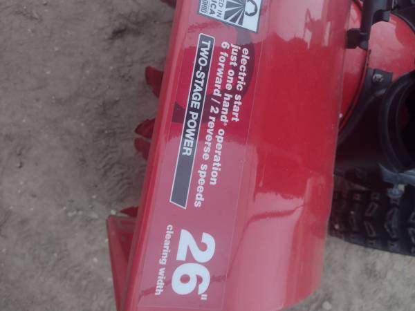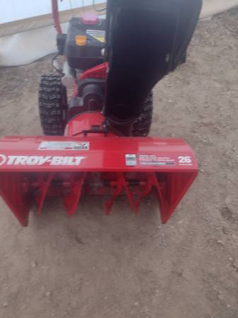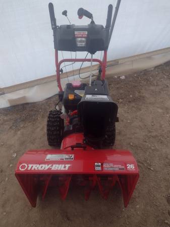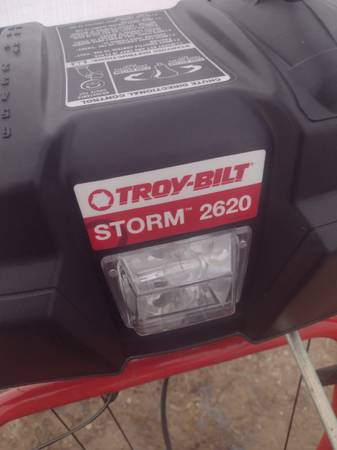 Troy Bilt 26" snow blower, model Storm 2620, hand controls, light, works great, very little use.$525.00, , Can deliver it If in the Manitowoc, Two Rivers area.