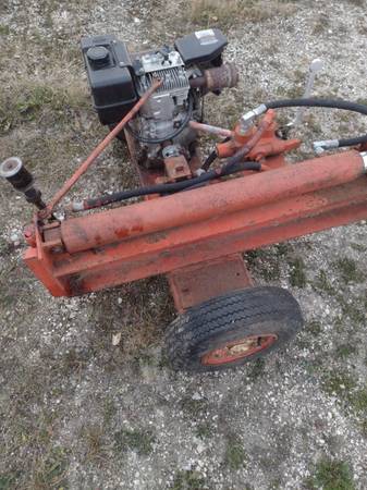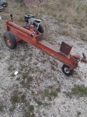 Older Wood Splitter, 8 HP Briggs and Stratton motor, splits up to a 20" piece, don't know much about it, the gas tank has a small leak and front tire has a leak, other than that it works as it...