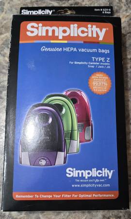 Simplicity Genuine HEPA Vacuum Bags Type Z. 6 Bags.