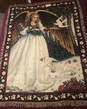 Christmas Angel with Doves - Lynn Bywaters - Cotton Woven Blanket Throw/Tapestry.
