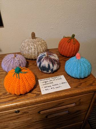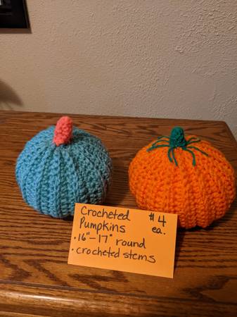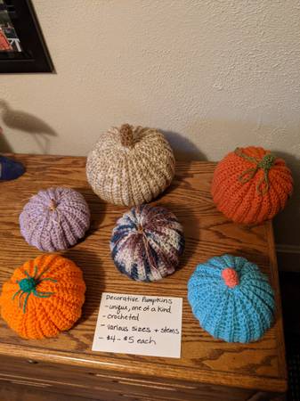 Hand-made, one of a kind pumpkins. Great for fall decorating.