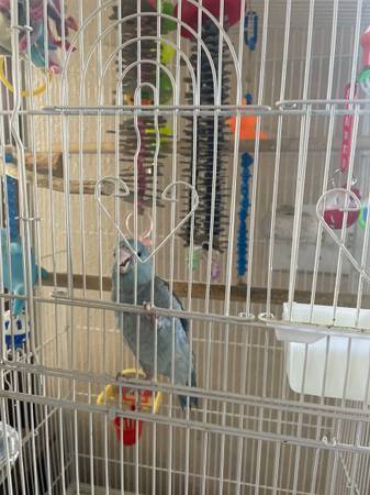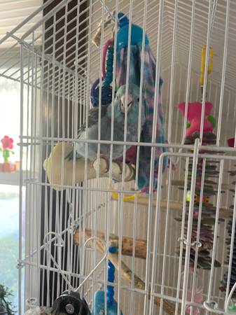 Looking to find a home for these guys, one is female and she is blue, the male is green with undertones such as light blue, they will come with a good size cage, there toys, they are still young , I...