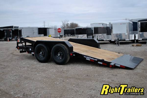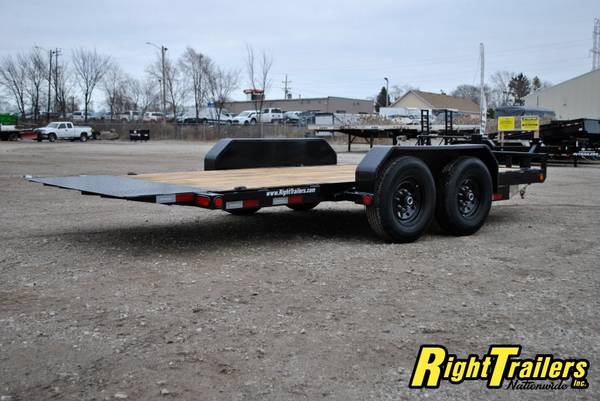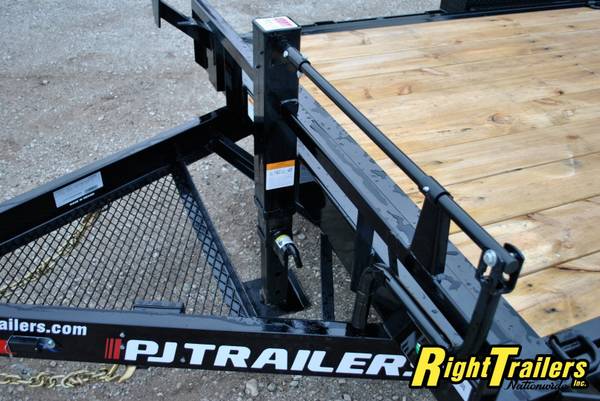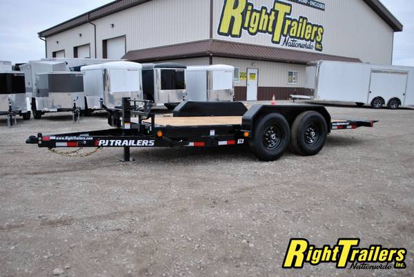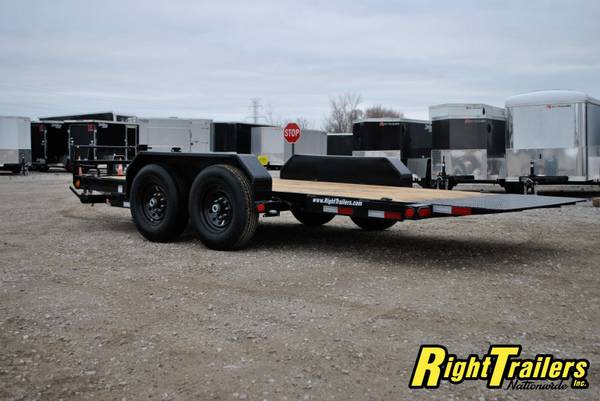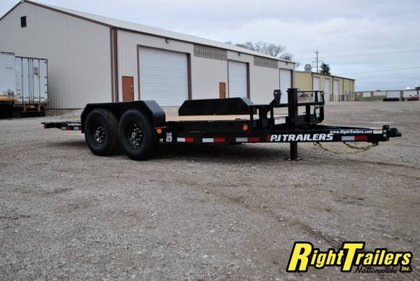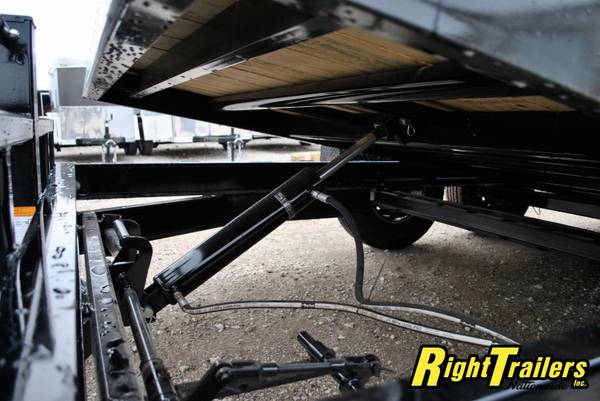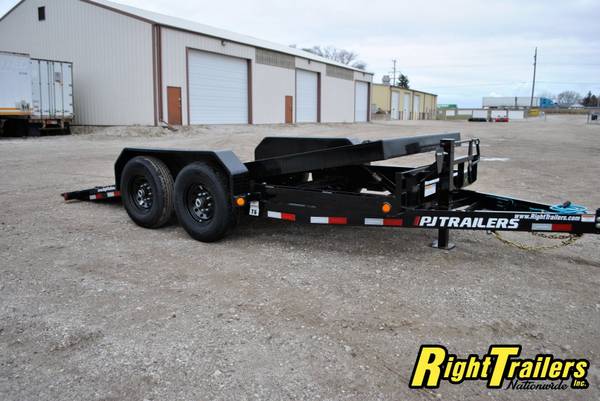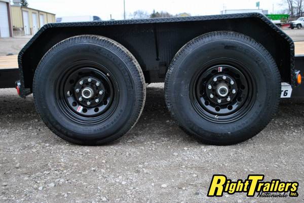 PJ 16' T6 Tilt Bed Equipment Trailer 74"wide Tilt Deck, 83" between fenders, 6" C-Channel frame with 12K Drop Leg Tongue Jack (heavy duty), 2 5/16" adjustable coupler, stake pocket, 2" Treated Pine Lumber Deck, 235/80/R16 tires (E Rated) on Black Mod Wheels, DOT Flushmount Lifetime LED lighting, SPARE TIRE MOUNT,14K GVWR, 11,020 Max payload