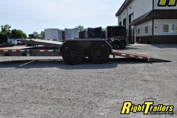 *** USED *** MIDSOTA TB-20 Tilt Bed Equipment Trailer 4' Stationary Deck / 18' Gravity Tilt Deck, 82" between fenders, 6" C-Channel frame with 12K Drop Leg Tongue Jack (heavy duty), 2 5/16" adjustable coupler, stake pocket, FORK HOLDER, 3 "D" Rings, 2" Treated Pine Lumber Deck, 235/80/R16 tires (LR - G) on Black Mod Wheels, MUDFLAPS, DOT Flushmount lighting, 15,400 GVWR - NEWER TIRES, NEW BRAKES AND AXLE SERVICE, NEW SUSPENSION EQUALIZERS WITH NEW HARDWARE