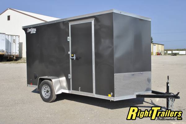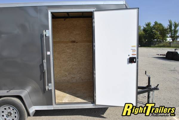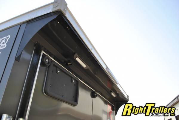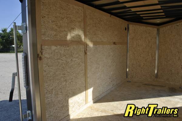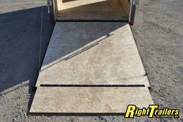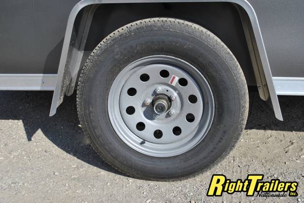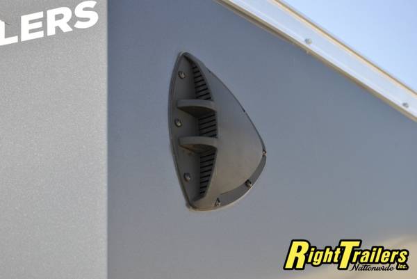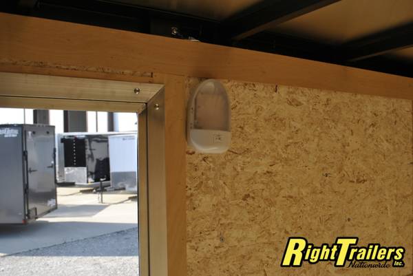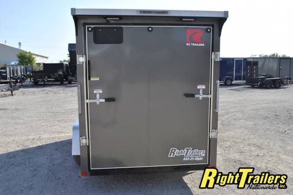 RC Trailer RDLX(REV24) - All steel frame, 6'6" interior height, 3/8" Engineered wood walls, 3/4" Engineered floor, REAR RAMP DOOR W/FLAP, 32" flush lock side door, Lippert drop axle W/6yr warranty, , SMOOTH fenders, 24" ATP stone guard, (1) 12 volt interior lights, 8" rear kick out with loading lights w/wall switch, (4) D Rings, flow thru vents, 16 OC Floor, Ceiling & Wall, 18" V Nose, ONE PIECE ALUM ROOF, GRAY SCREWLESS 0.030 ALUMINUM EXTERIOR , 1590 MAX PAYLOAD