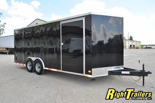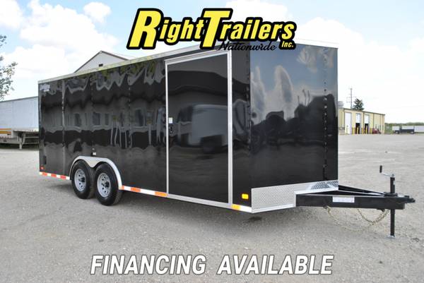 2026 Procraft 8.5 X 20 With .030 BLACK EXTERIOR**- V-Nose, 2x6 tube main frame, 3/8" plywood walls, 3/4" TREATED plywood floor, Rear Ramp Door, 48" Side Door, Flush Lock, Tandem 5200 LB Drop Axles (9990 LB GVWR) With Brakes, , Aluminum Fenders, 24" stone guard, 12 V interior light, SIDE VENTS,LED LIGHTS, TUBE ROOF BOWS, 16" OC