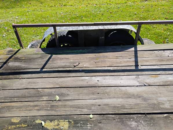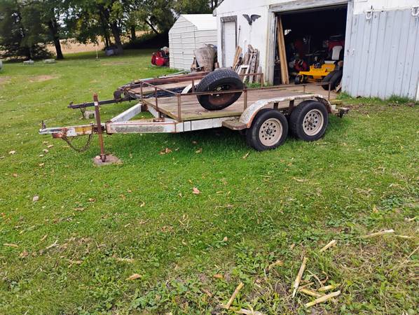 have a trailer for sale it is 9 foot 4 long by 5foot 7 wide plank width ,about 15 feet long overall length with room on tongue for a storage box or to extend deck longer.Twin 3000 lb axles one with brakes that are not hooked up ,,,,all matching tires and rims ,spare is steel rim ,good tread on all [about half tread]deck is pressure treated lumber and in good shape ...Will need lights and harness ,,could go to harbor freight and get a set of magnetic ones cheap or light kit cheap also ,NO title ,never got one when i got trailer........come and get yourself a trailer and haul whatever,,,,,,,see pics